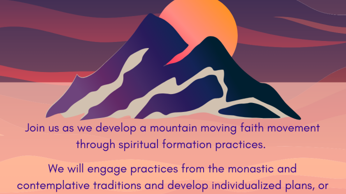 Join us as we develop a mountain moving faith movement through spiritual formation practices. This event meets bi weekly on the 2nd & 4th Mondays of the month at 7:00 pm...
