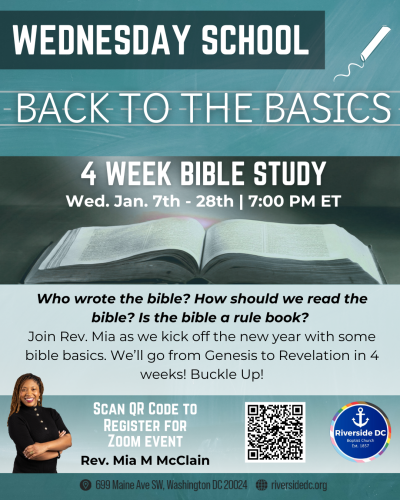 Join Rev. Mia as we kick off the new year with some bible basics. We’ll go from Genesis to Revelation in 4 weeks! Buckle Up! Starting Wed. Jan. 7 through Wed. Jan. 28.