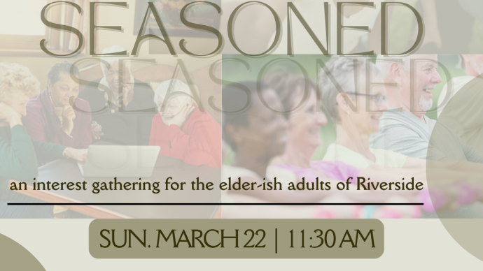 Join us following worship to discuss future opportunities to build community, brainstorm ideas, and learn about this upcoming ministry for Riverside's elder-ish adults. Lunch...