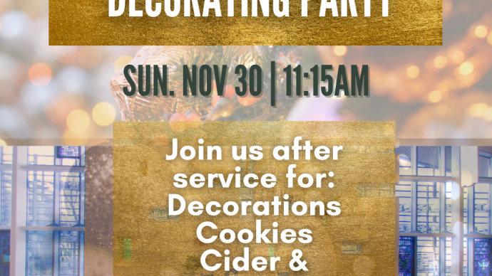 Join us on Nov. 30 after the worship service for an Advent & Christmas Decorating Party. There will be cookies and cider, as well as community as we decorate Riverside...